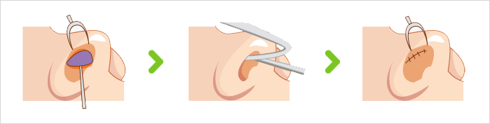 따라서 수술적인 교정은 이러한 연골의 모양을 바로 잡아주는 방법을 사용합니다.